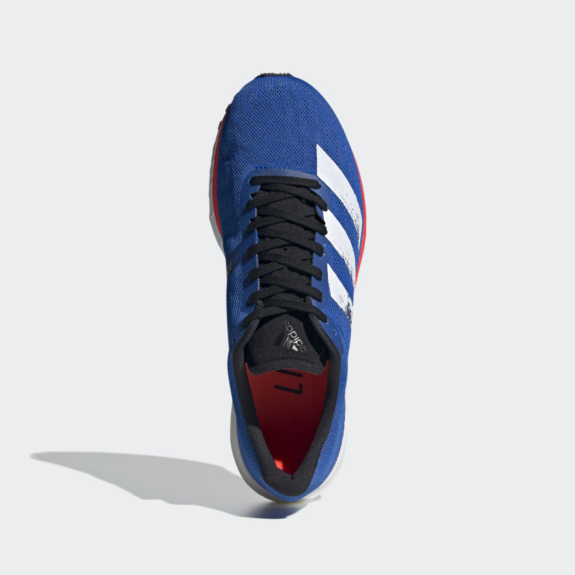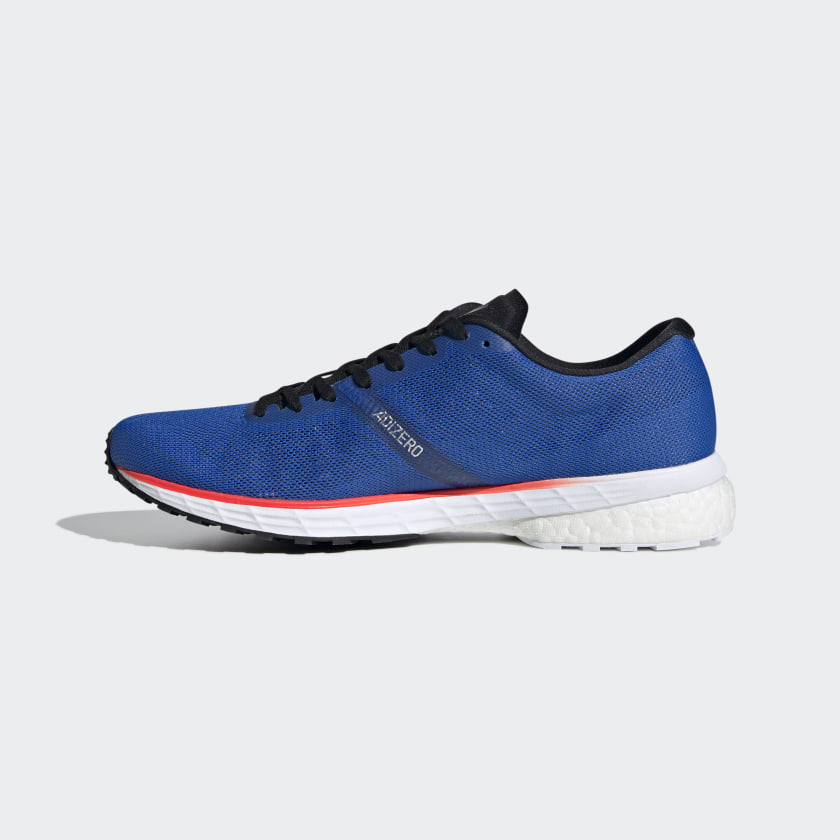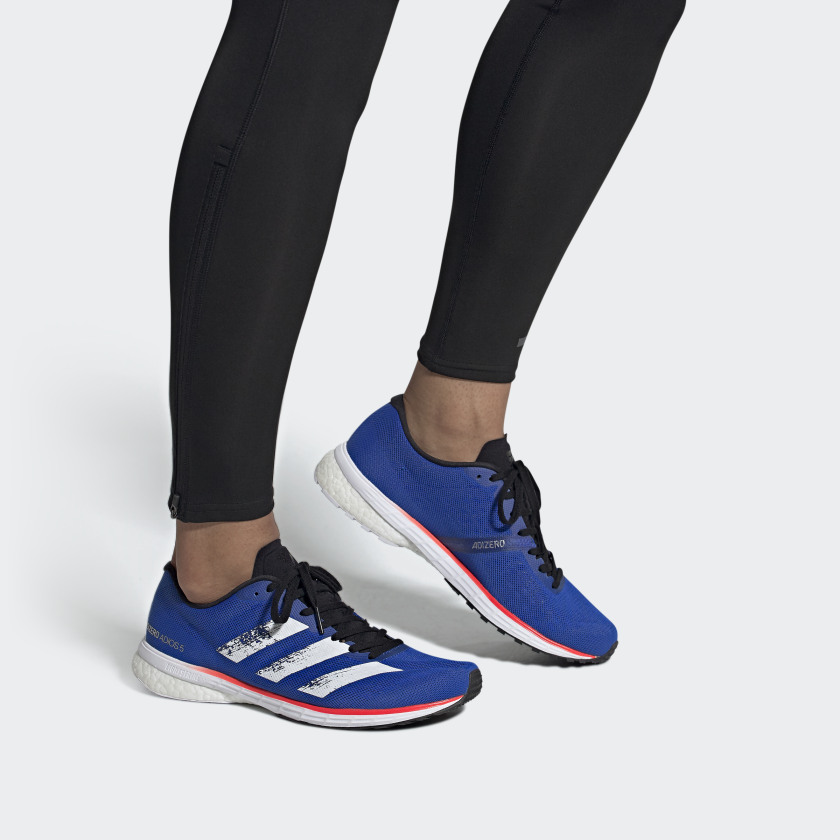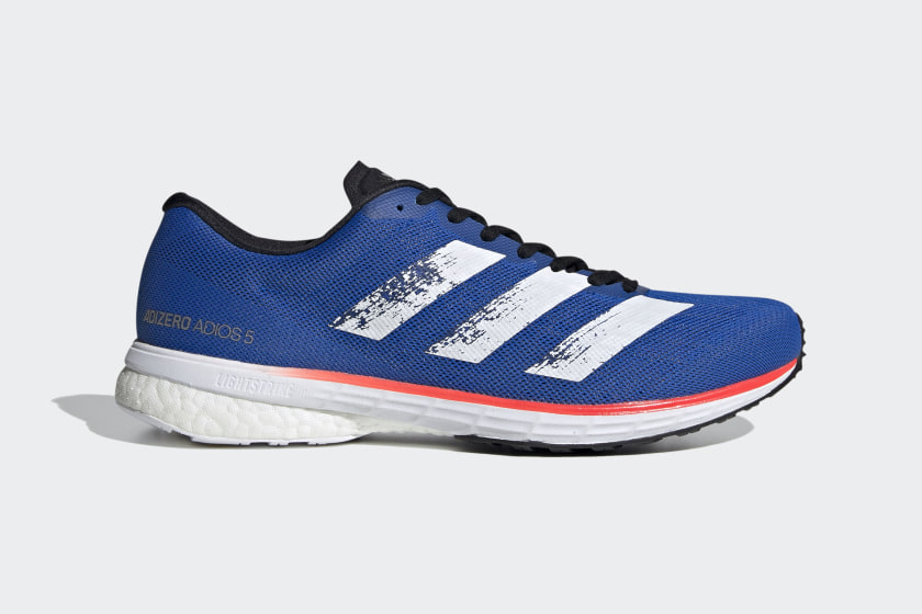 adidas Adizero Adios 5 สีน้ำเงินที่เคยเผยโฉมในช่วงปลายปีที่แล้ว ตอนนี้ออกมาจำหน่ายแล้วหลังจากที่เผยโฉมออกมาแต่กลายเป็นสีดำส้มของแคมเปญ Faster Than ออกมาวางจำหน่ายก่อน สำหรับรองเท้าวิ่งสาย Racing Flat ของตระกูล Adizero รุ่นนี้ยังคงมาพร้อมกับหน้าผ้า Celermesh ที่โปร่งสบายและกระชับเท้าด้วยโครงสร้าง microFIT และพื้นชั้นกลางเทคโนโลยี Boost + Lightstrike ที่มอบการตอบสนองได้ดีในขณะวิ่ง พื้นชั้นนอกยาง Conitnental ที่ยึดเกาะพื้นได้อย่างมั่นคง