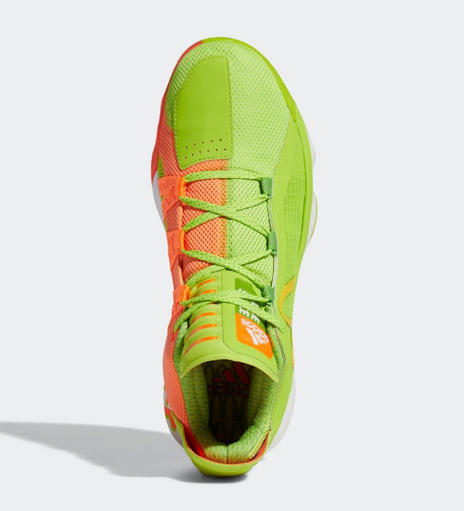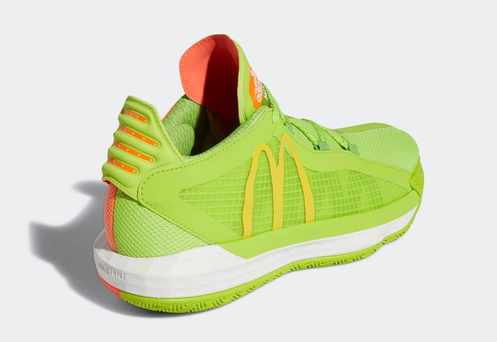 สำหรับ adidas DAME 6 รองเท้าซิกเนเจอร์ของ Damian Lillard การ์ดทีม Portland Trail Blazers มาในชื่อคู่สีว่า “Dame Sauce” โดยจะเป็นสีของ Sweet ‘n Sour มาในสีเขียวไลม์และส้ม และคาดด้วยโลโก้ M ของ McDonald’s ไว้ตรงกลางเท้า
