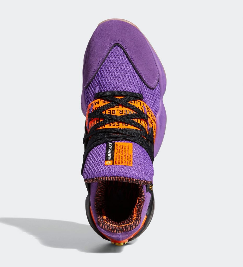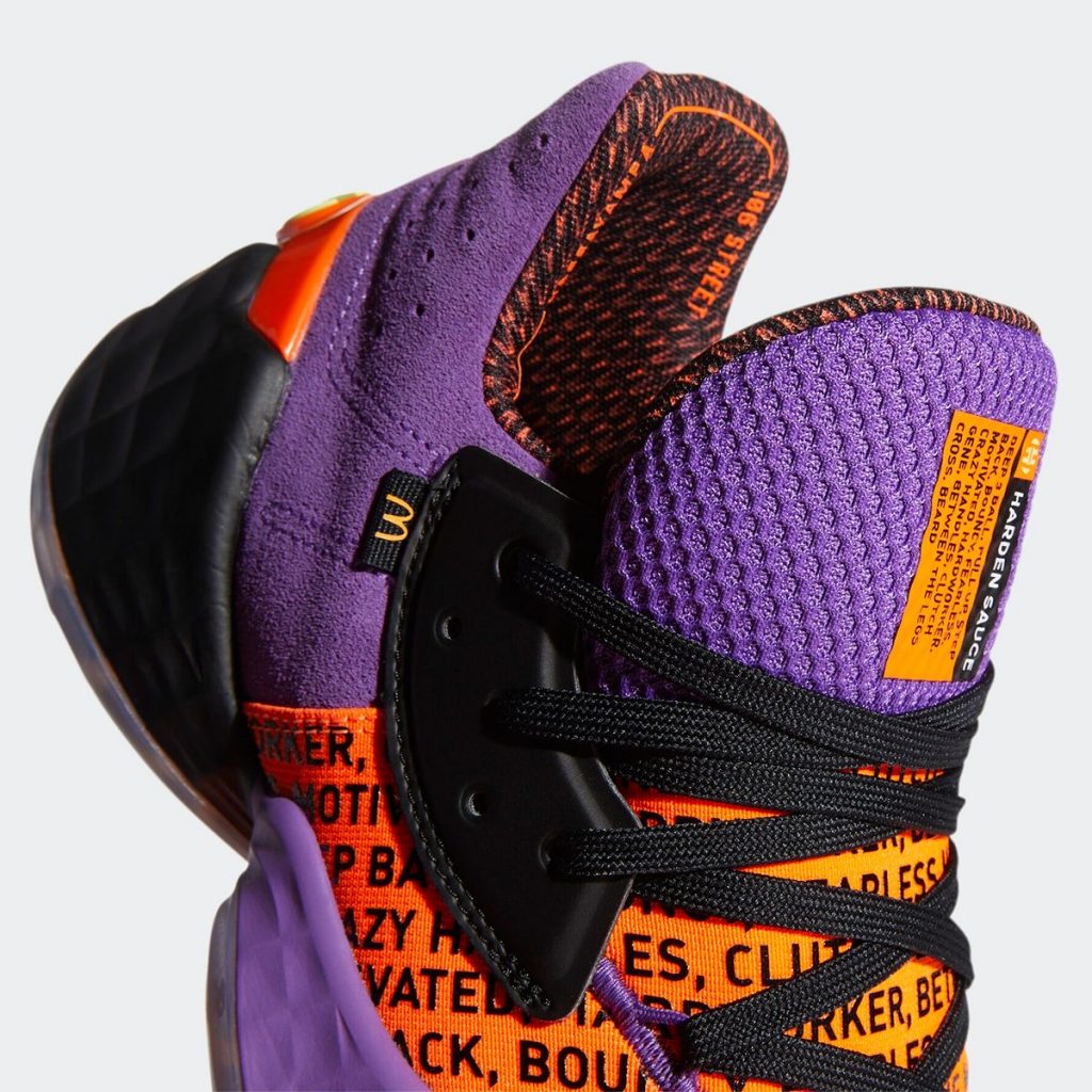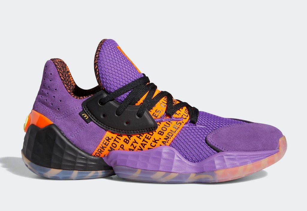 adidas Harden Vol. 4 รองเท้าบาสเก็ตบอลของ James Harden มาในสีม่วงส้ม โดยใช้ชื่อว่า “Harden Sauce” ดีไซน์จะมาจากแพ็กเก็จ McDonald’s Purple Sweet Chili กล่องใส่ซอสน้ำจิ้มนั่นเอง พร้อมกันนี้ยังมีการไล่เฉดสีและโลโก้ McDonald’s ใต้รองเท้า ซึ่งคู่นี้จะมาในรูปแบบพื้นใสด้วย