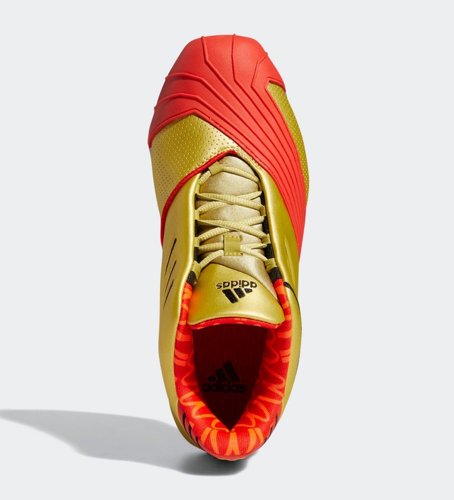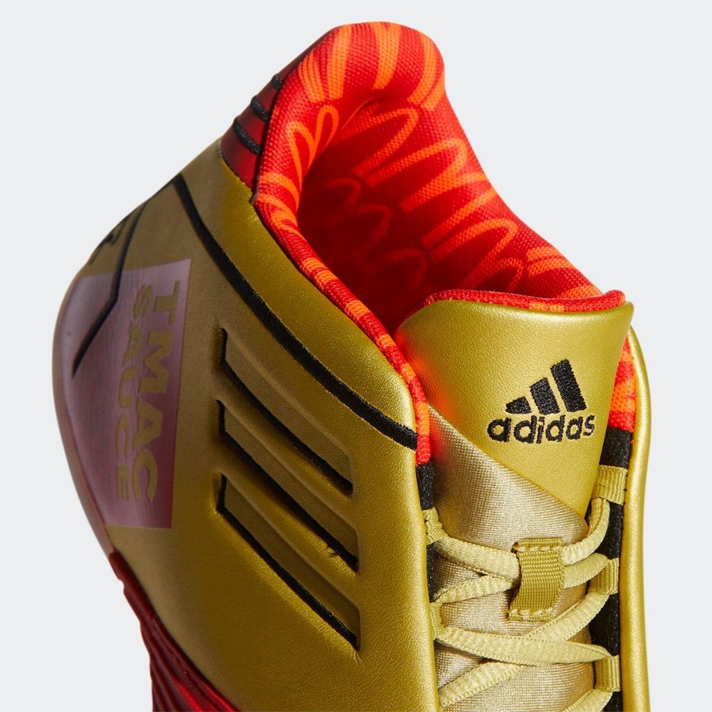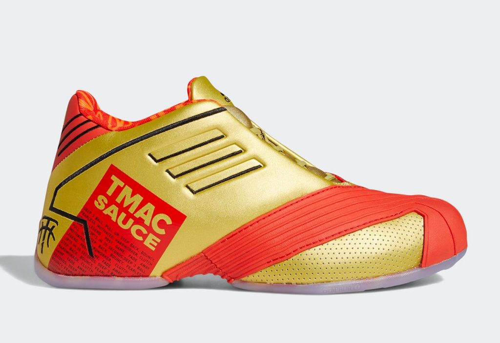 adidas T-Mac 1 “TMAC Sauce” รองเท้าบาสเก็ตอบลในตำนาน Tracy Mc Grady เป็นสีที่ได้รับแรงบันดาลใจจากแพ็คเกจของ Sriracha Mac Sauce ซึ่งเป็นสีแดงและทองตามแพ็คเกจเลย และใต้รองเท้ามีโลโก้ McDonald’s และมาในรูปแบบพื้นใสเช่นกัน