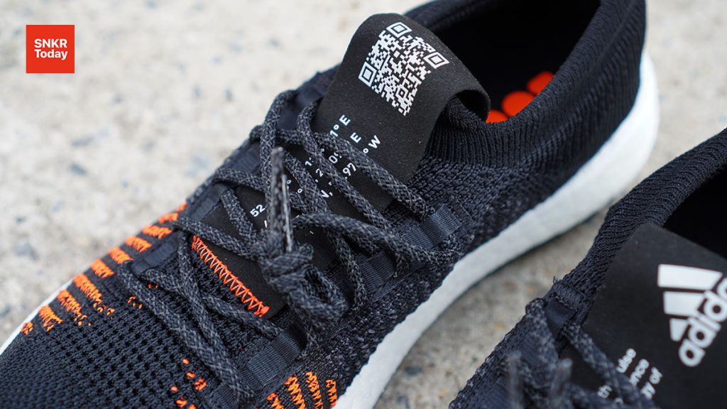 ตรงลิ้นจะมี QR Code สำหรับสแกนเพื่อไปยังเพลย์ลิสต์พิเศษฟังเพลงจาก Spotify ที่เป็นพาร์ทเนอร์กับทางอดิดาส และรองเท้ารุ่นนี้ทางอดิดาสร่วมกันพัฒนากับนักวิ่งท้องถิ่นที่ ปารีส, เบอร์ลิน และ นิวยอร์ค จึงมีตัวเลขพิกัดเขียนไว้ตรงด้านล่าง QR Code ยาวลงมา ซึ่งตรงนี้เราเคยเห็นใน Senseboost Go กันไปแล้ว