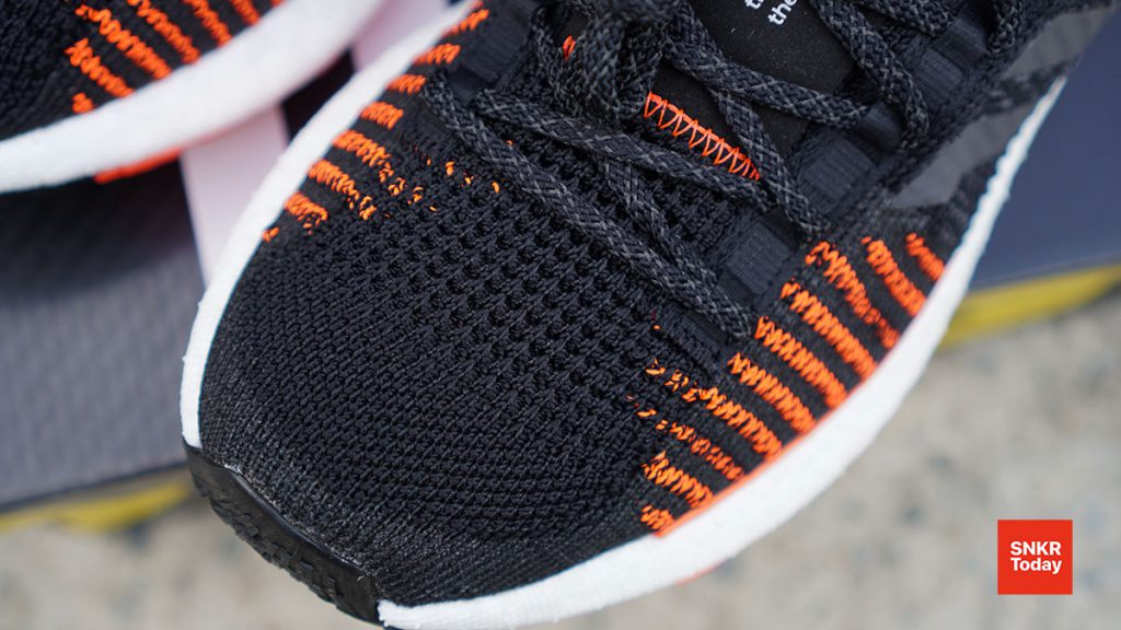 อย่างไรก็ตามตอนนี้เราก็ได้รองเท้าคู่นี้มาสัมผัสแล้ว สำหรับรุ่นนี้มีสิ่งที่น่าสนใจหลายอย่างครับ ไม่ว่าจะเป็นอัปเปอร์ที่เปลี่ยนมาใช้ผ้าถักแบบใหม่ที่เรียกว่า “Adapt Knit” จะมีความยืดหยุ่นและกระชับเฉพาะจุด ตัวผ้ามีความนุ่มมาก แต่ก็ไม่ได้กระชับไปหมด ใส่สบาย “คนละฟีลลิ่งกับ Primeknit 360 เลย”