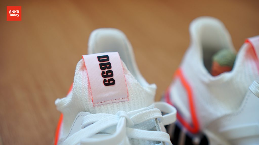 สำหรับโมเดลรองเท้าที่นำมาใช้ก็คือ Ultraboost 19 รองเท้าวิ่งรุ่นล่าสุดของปี 2019 นี้จากอาดิดาส ที่มาพร้อมกับอัปเปอร์ผผ้าถัก Primeknit 360 สีขาว มีความนุ่มกระชับและยืดหยุ่น ไม่บีบเท้า สวมเหมือนใส่ถุงเท้าได้เลย เคจด้านข้างมีการเปลี่ยนเป็นหนังสีขาวล้วน และแถบ 3 ขีดจะเป็นแถบสะท้อนแสงอีกด้วย ซึ่งอัปเปอร์สีขาวนี้ตัดกับ 3D Heel Frame สีส้มอย่างได้ลงตัว พร้อมกับใส่ตัวอักษร DB99 สีดำไว้ที่ลิ้นรองเท้าที่มีการใช้สีพื้นหลังสีส้มทำให้ดูเหมือนมีออร่าออกมา และพิมพ์ใส่บนพื้นชั้นกลางโฟม BOOST ที่มีปริมาณมากกว่า Ultraboost 4.0 แต่ยังคงน้ำหนักเท่าเดิมอยู่ มอบความนุ่มสบายใยขณะเดินและวิ่งได้เป็นอย่างดี พื้นชั้นนอกเป็นยาง Continental และมีแกน Torsion Spring อยู่บริเวณกลางเท้าที่จะมาช่วยรักษาสมดุลและคอยรักษาให้โฟมคงรูป ไม่บิด