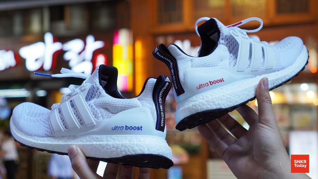 รองเท้ารุ่นนี้ได้นำ Ultraboost 1.0 มาตกแต่งใหม่ ใช้อัปเปอร์สีขาวทั้งหมด ตัดกับป้ายตรงลิ้นรองเท้าสีแดงและสีน้ำเงิน พร้อมกับคำว่า Ultraboost บน Heel Cup สีแดงและสีน้ำเงินสลับกัน ซึ่งดูโดยรวมแล้วคู่สีที่นำมาใช้นั้น ก็คือ ขาว, น้ำเงิน, แดง และดำ เป็นสีที่ปรากฏอยู่บนธงชาติเกาหลี พร้อมกับใส่ตัวอักษรฮันกึลในรองเท้าด้วย