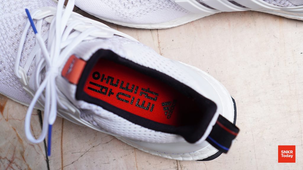 울트라부스트 한글 คือ ตัวอักษรภาษาเกาหลีที่ปรากฏอยู่บน Heel Tab ส้นเท้า และแผ่นรองด้านในที่เป็นข้างละสี ถือเป็นลูกเล่นที่ดูแปลกตาและสวยงามเลยทีเดียว และพื้นชั้นนอกก็ใช้ยาง Continental แล้ว