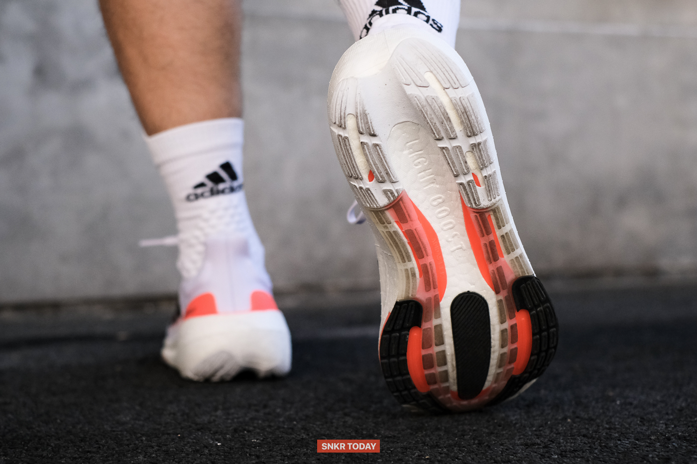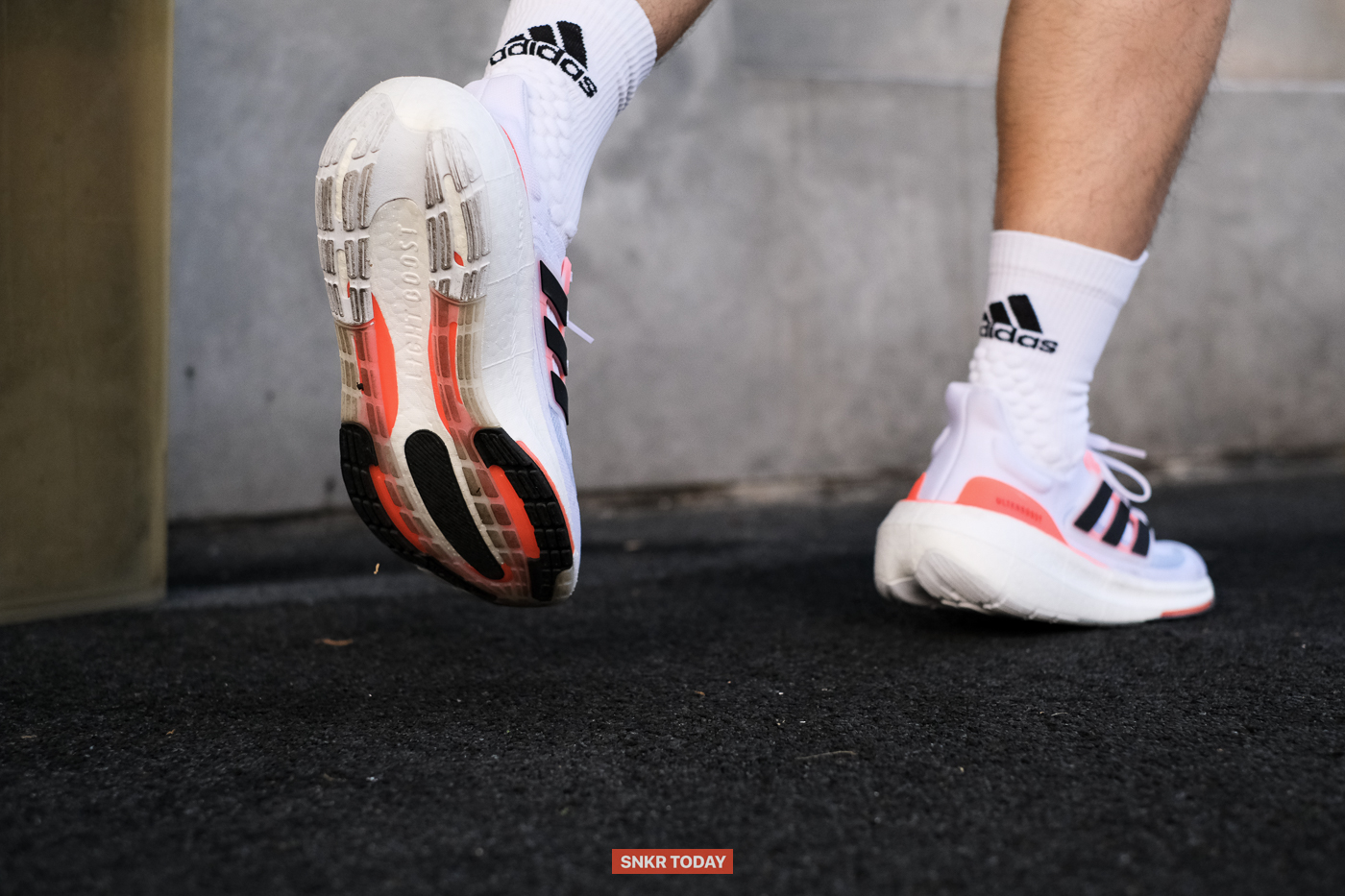 เมื่อสวมใส่ออกวิ่ง ความรู้สึกของพื้นชั้นกลาง Light Boost จะให้ความรู้สึกที่แตกต่างกับ Boost รุ่นก่อนหน้าแบบชัดเจน โดยมอบความรู้สึกนุ่ม แต่ไม่ยวบเท้า มีความกระด้างเล็กน้อย ไม่ได้นุ่มนิ่มแบบแต่ก่อนแล้ว ซึ่งพอพื้นเฟิร์มขึ้นก็จะทำให้การเกร็งขาน้อยลง และพื้นโค้งได้องศามากขึ้น กลิ้งเท้าได้ดีขึ้น โฟมหนาขึ้นเล็กน้อยก็จะช่วยเรื่องซัพพอร์ตได้ดี ทำให้ลืมน้ำหนักของตัวรองเท้าไปได้เลย วิ่งไปได้แบบเรื่อยๆ