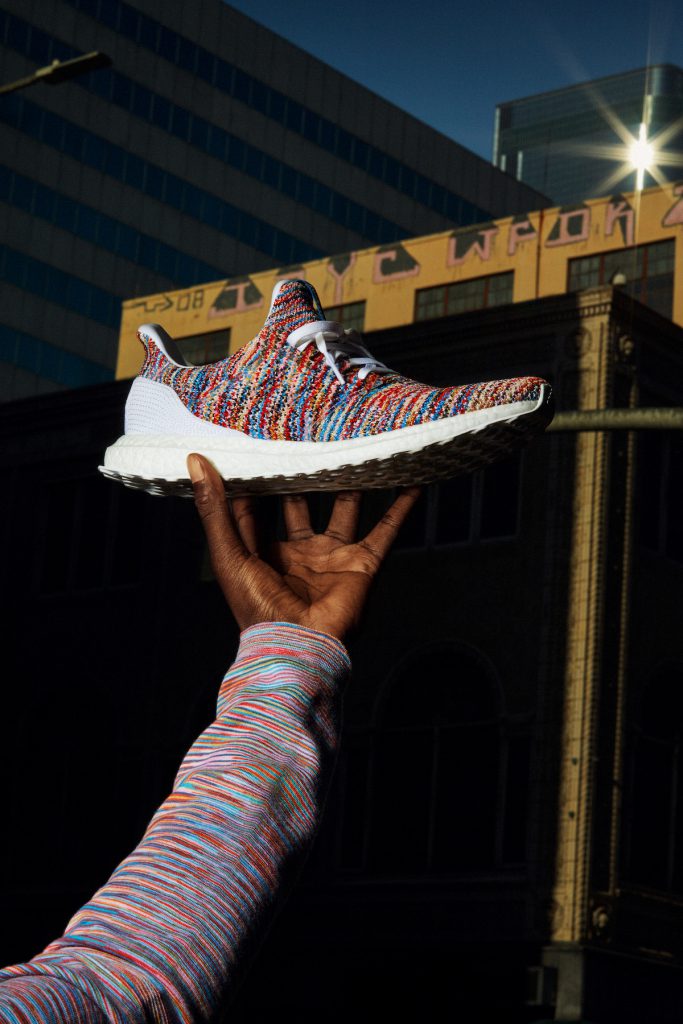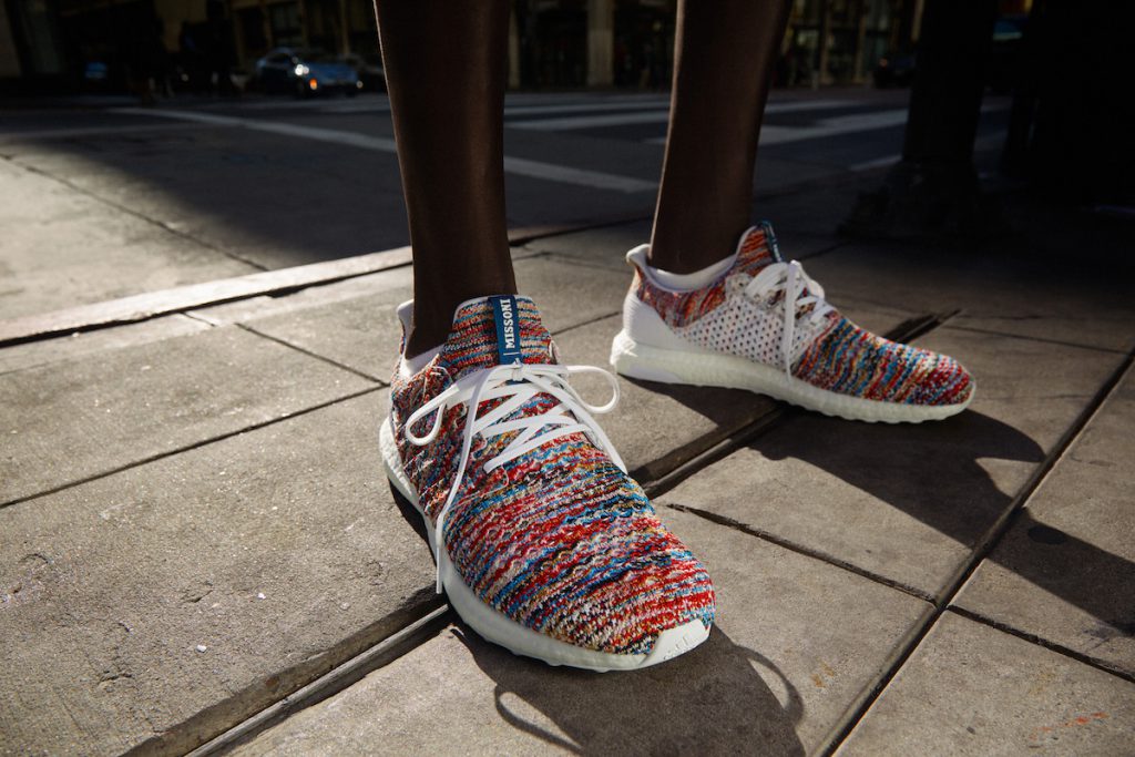 เริ่มจากรองเท้าอัลตร้าบูสท์ รองเท้ารุ่นยอดนิยมของอาดิดาส ซึ่งมีการใช้เทคนิค Space-dying สูตรเฉพาะของมิสโซนี ในการถักทอตัวรองเท้าให้เป็นลวดลายเปลวเพลิง อันเป็นสิ่งที่สร้างชื่อเสียงโด่งดังให้กับมิสโซนี โดยยังคงไว้ซึ่ง บูสท์ สุดยอดเทคโนโลยีแห่งวงการวิ่งที่อาดิดาสคิดค้นขึ้นมาเพื่อการตอบสนองและการคืนพลังงานในระดับสูงสุดให้กับนักวิ่ง