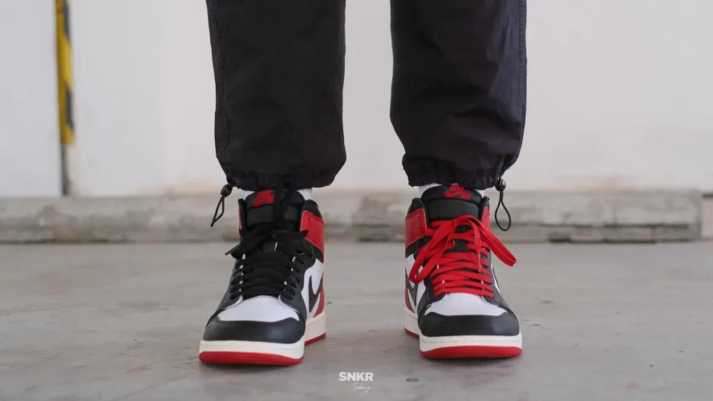 ส่วนพื้นรองเท้าก็มาในสีขาว Off-white ตามสไตล์ของรองเท้าซีรีส์ Reimagined ที่ให้ดูเก่า คลาสสิคตั้งแต่เปิดกล่อง อีกทั้งยังมาพร้อมกับเชือกสีดำและสีแดงมาให้เลือกใช้งาน ถ้าอยากให้เหมือนกับภาพโปรโมทก็เชือกดำ แต่ถ้าอยากให้เหมือน MJ ตอนพาดบ่าขณะโฟโต้ชู้ตก็สีแดง หรือถ้าเลือกไม่ได้ก็ร้อยไปทั้งสองสีได้เลย