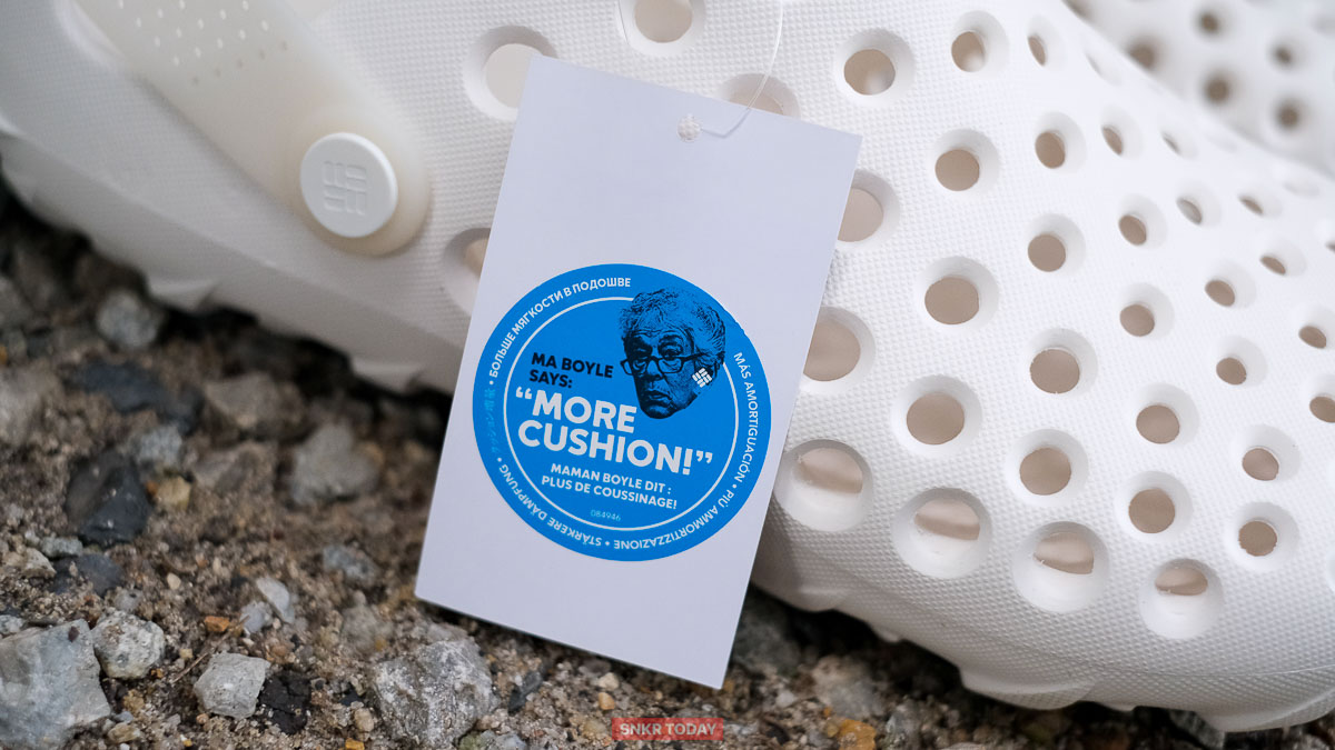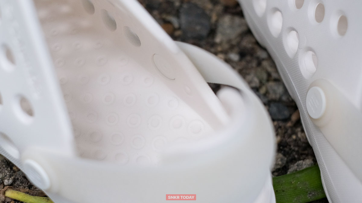 ส้นเท้ามีดีไซน์สูงขึ้นมาปิดหลังเท้า และมีสายคาด TPU ที่สามารถเลือกปรับไปด้านหน้าเพื่อความสะบายมากขึ้น หรือปรับไปด้านหลังเพื่อเพิ่มความกระชับได้