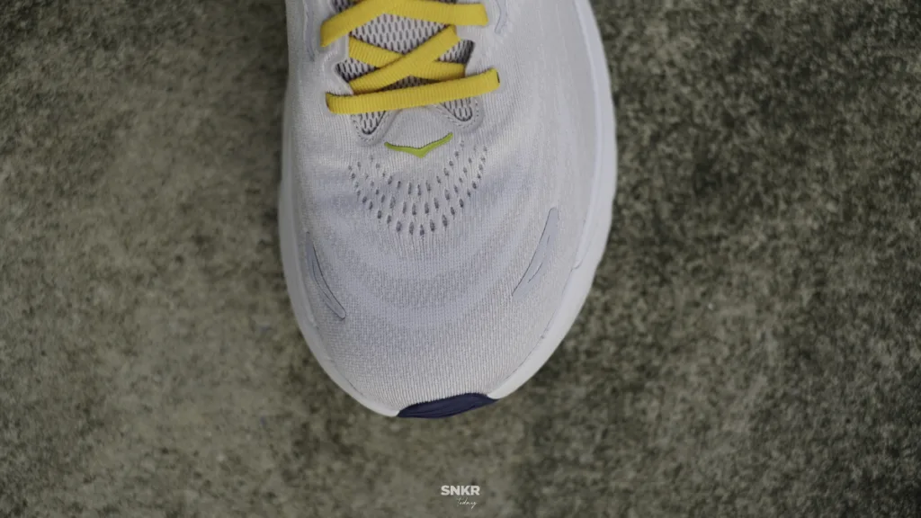 อัปเปอร์ผ้าตาข่าย Double Jacquard Mesh ผ้าตาข่ายสองชั้น มีการถักทอให้เป็นลวดลายและพร้อมเป็นรูระบายอากาศรอบๆ ตัวรองเท้า พร้อมส้นเท้าดีไซน์เอียงหลบเอ็นร้อยหวาย ลิ้นรองเท้ามีความหนานุ่ม กลางเท้ามีโลโก้ HOKA ติดไว้อยู่ ดีไซน์ดูไม่แตกต่างจาก Clifton 10 มากนัก มีความสวยงาม ลงตัวกว่าเดิม ดูไม่แบนๆ เรียวๆ ยาวๆ แบบ Arahi 7 แล้ว ถือเป็นรองเท้า Stability ที่สวยงามคู่นึงเลยทีเดียว