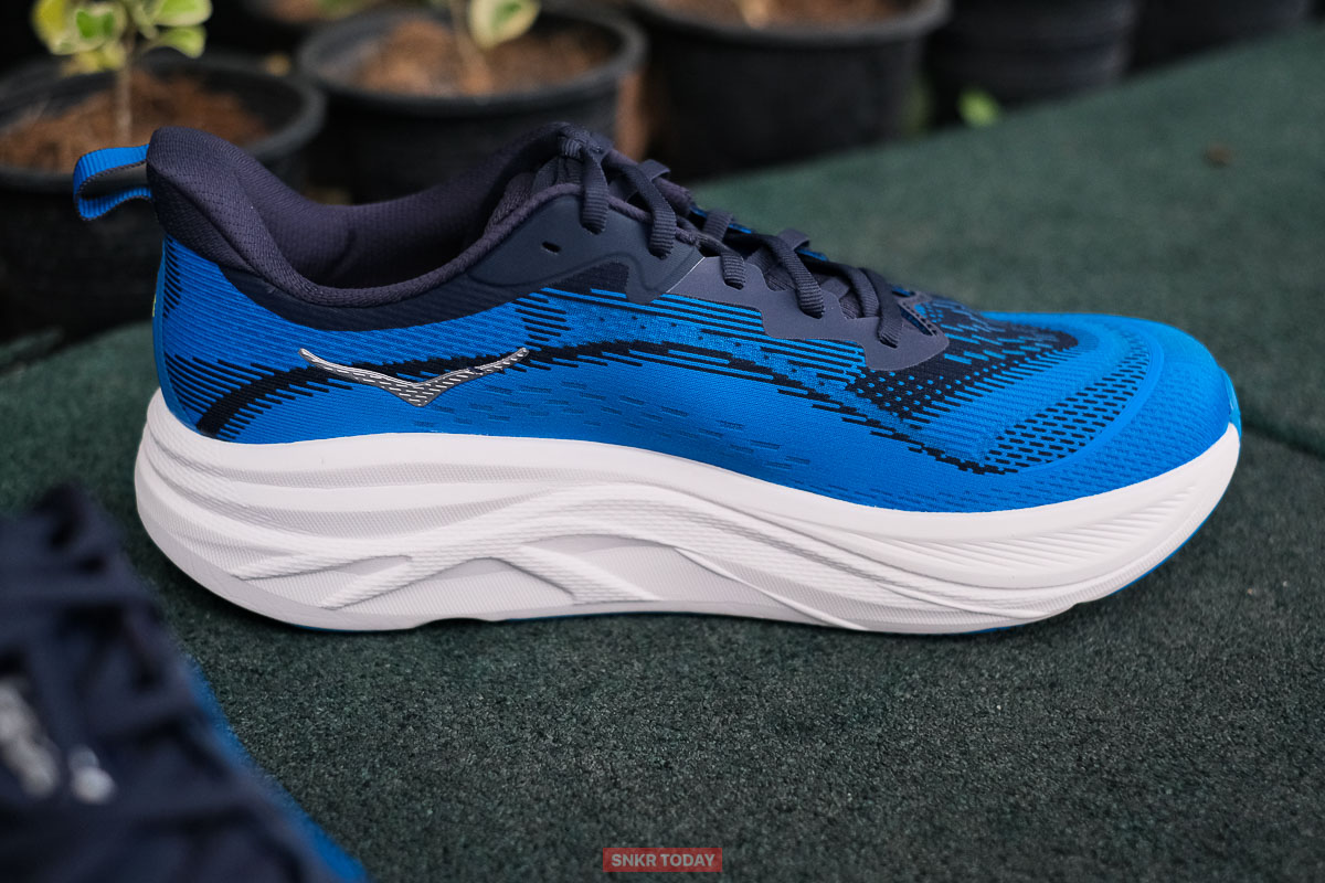 Skyflow เป็นรองเท้าวิ่งแฟรนไชส์ใหม่ของทางโฮก้า ซึ่งจัดอยู่ในหมวด Daily trainer หรือเป็นรองเท้าวิ่งที่สวมใส่วิ่งในทุกๆ วัน และเหมาะสำหรับการใส่วิ่งฝึกซ้อมระยะไกล โดยรุ่นนี้จะได้แรงบันดาลใจรูปทรงมาจาก Skyward X รองเท้าวิ่ง Super trainer ทำให้มทีรูปทรงที่ดูหนา และเหมือนจะมีโฟมสองชั้นจากสีบนพื้นชั้นกลาง แต่ความจริงแล้วจะเป็นโฟม Supercritical EVA Foam แบบเต็มความยาวเท้าทั้งชิ้น มี Stack height 40 มม / 35 มม. ดรอป 5 มม. มาพร้อมรูปทรงพื้นโค้ง Meta-rocker