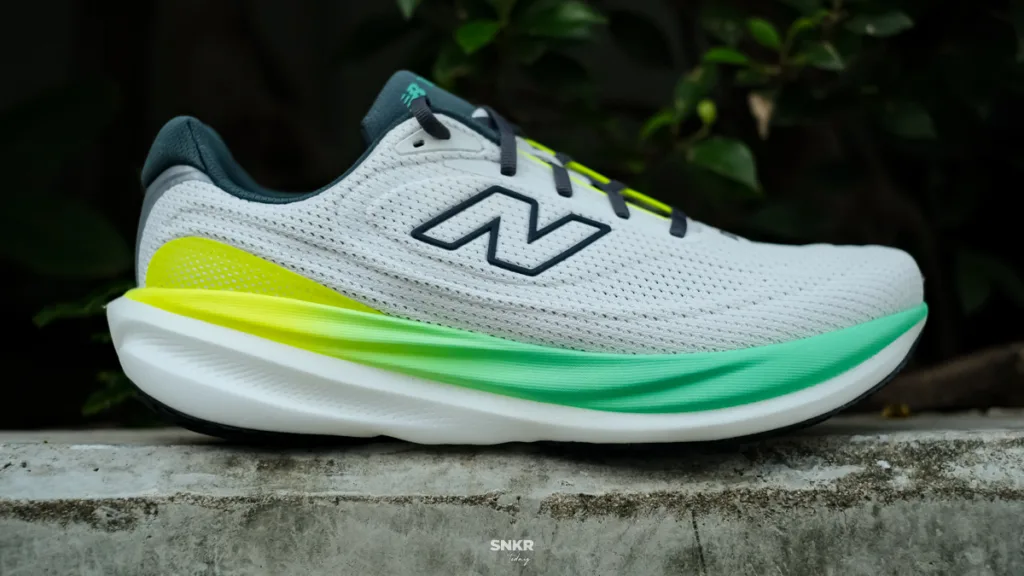 ภาพรวมมีการเปลี่ยนแปลงแบบใหม่หมดจด ค่อนข้างแตกต่างจาก New Balance Fresh Foam X 1080v14 แต่ถ้ามองเป็นซีลูเอทยังถือว่าคล้ายเดิมอยู่ มาในรูปแบบที่พื้นหนา อัปเปอร์ค่อนข้างหนาด้วยเช่นกัน ซึ่งก็เป็นตามแนวรูปแบบของรองเท้าวิ่ง Daily trainer ชัดเจน