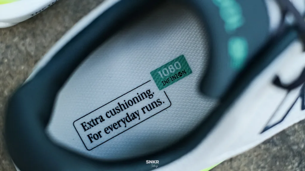 เมื่อออกวิ่ง พบว่าโฟมใหม่ Infinion มีการปรับจูนมาให้มีการตอบสนองได้ไวขึ้น ตัวโฟมมีความนุ่มและการยุบตัวลง แต่คืนตัวได้ไวมาก ไม่เหมือน Fresh Foam X ใน 1080v14 แล้ว ส่งผลให้ไม่ต้องเกร็งขาเพราะโฟมยวบอีกต่อไป แต่ในช่วงแรกๆ อาจจะไม่คุ้นชิน ต้องค่อยๆ วิ่งปรับตัวเข้ากับโฟมที่ตอบสนองได้ไวเล็กน้อย พอจับจังหวะได้ในเรื่องของการลงเท้า ยกเท้า ก็ทำให้เราวิ่งได้เพลิน