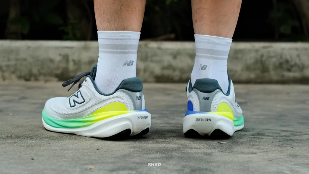 สำหรับรุ่นนี้ยังคงออกแบบมาสวมใส่ในทุกๆ วัน ดังนั้นการวิ่งทำความเร็วอาจจะไม่ได้ตอบโจทย์ แต่ถ้าเลือกมาวิ่งในวัน Easy หรือวิ่ง Zone 2-3 สำหรับเราถือว่าเป็นตัวเลือกที่ดี นอกจากจะมีการตอบสนองที่ดีขึ้น และความนุ่มแบบแปลกใหม่แล้ว การรองรับแรงกระแทกยังคงทำได้ดีอีกด้วย และด้วยความที่ฐานพื้นชั้นกลางมีความกว้างตั้งแต่หน้าเท้า, กลางเท้า และส้นเท้า ช่วยให้เราลงเท้าได้อย่างมั่นใจ ตัวรองเท้าเองก็มีความมั่นคงมากกว่าเดิม เรื่องจากโฟมใหม่ที่ไม่มีอาการยวบเยอะนั่นเอง