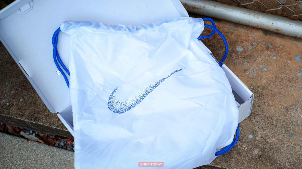 นอกจากตัวรองเท้าจะมาในรูปแบบที่พิเศษแล้ว กล่องรองเท้าก็เช่นกัน โดยจะมาในโทนสีขาวตัดด้วยน้ำเงิน และตัวอักษรก็จะเป็นลายมือด้วยเช่นกัน และสำหรับรุ่น Alphafly 3 ก็จะมาพร้อมกับถุงผ้าให้ด้วย