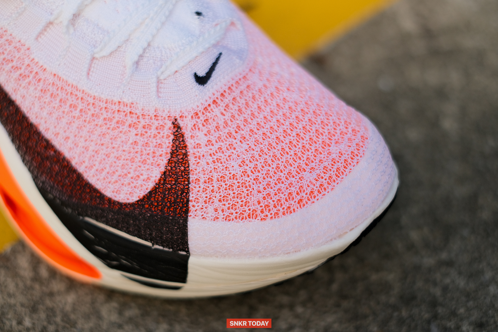 หากใครที่เคยลอง Alphafly 2 ต้องบอกเลยเป็นหนึ่งในรองเท้าวิ่งที่สมใส่เท้าเข้าไปได้ยากมากๆ คู่นึง แต่การปรับปรุงและเปลี่ยนแปลงในรุ่นที่ 3 นี้ ถือว่าแก้ปัญหานี้ได้หมดไปเลย ด้วยการออกแบบที่บริเวณข้อเท้าที่กว้างขึ้นรวมถึงยืดหยุ่นกว่าเดิม ทำให้การสวมใส่เท้าเข้าไปในอัปเปอร์ได้ง่าย และลักษณะของอัปเปอร์ก็จะเป็นแบบ Sock-like ที่ลิ้นรองเท้าจะเย็บติดกันกับหน้าผ้าโดยรอบ ให้ความรู้สึกเหมือนกับการสวมถุงเท้า
