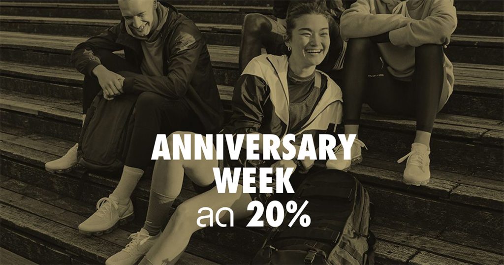 ไนกี้จัดแคมเปญ Nike Anniversary Week ลดราคารองเท้าและสินค้าที่อยู่ในคอลลเล็คชั่น 20% ซึ่งจะต้องทำการสั่งซื้อออนไลน์และใส่คูปอง