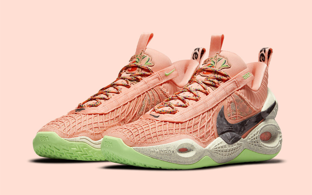 ไนกี้ ร่วมฉลองวันคุ้มครองโลก ส่ง Nike Cosmic Unity “Floral” ที่มาในสี Apricot Agate สีชมพูออกพีชสุดโดดเด่นและสดใส พร้อมกับโลโก้ ต้นและผลทับทิม (Pomegranate) บนลิ้นรองเท้าและในแผ่นรองเท้าด้านในก็มีข้อความเกี่ยวกับ Pomegranate ไว้อยู่ พื้นชั้นกลางสี Coconut Milk ที่มาในดีไซน์เว้านูนและมีเส้นสายเหมือนรูปโลก ปิดท้ายด้วยพื้นชั้นนอกแบบบางที่มาในสีเขียวสด Lime Glow