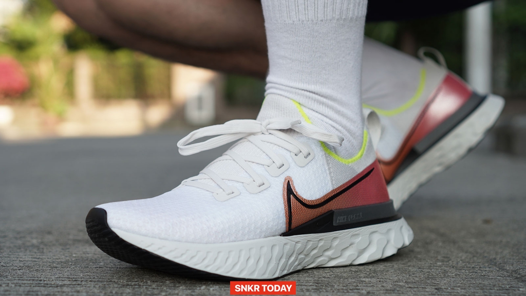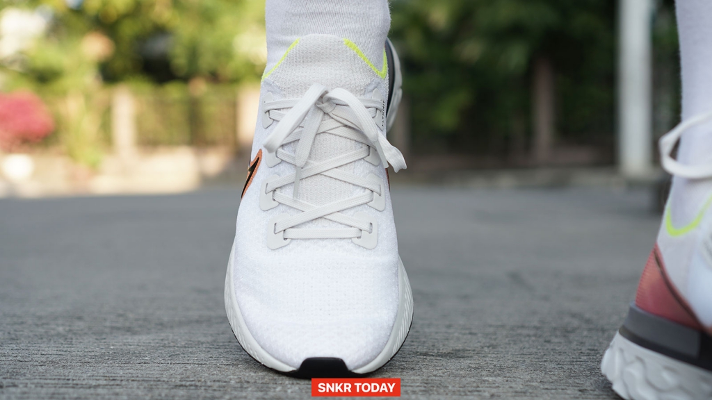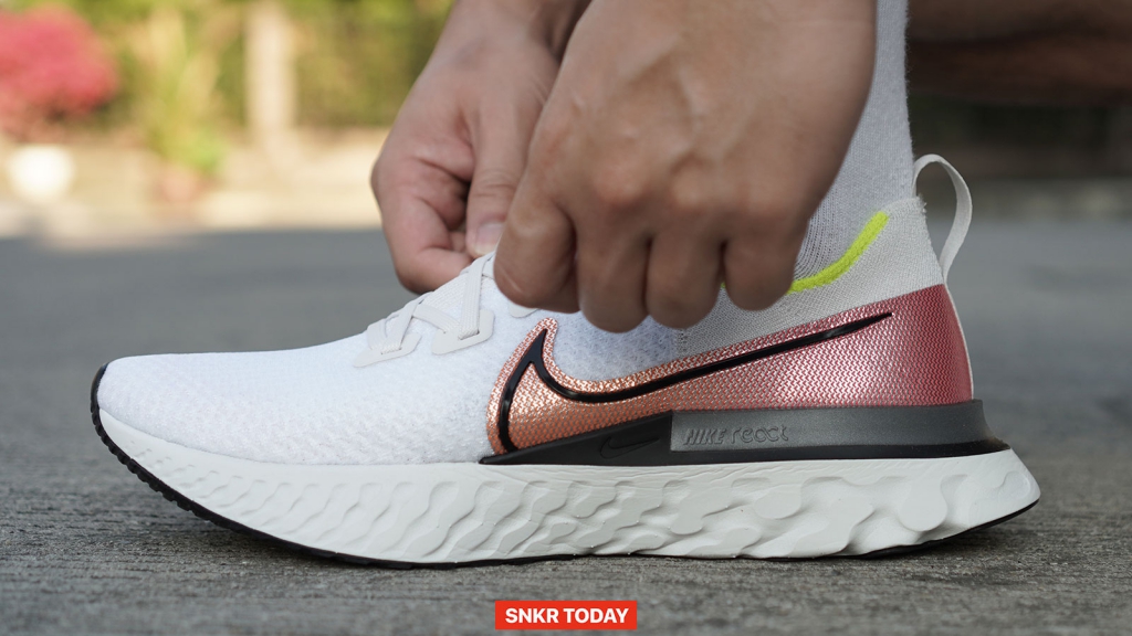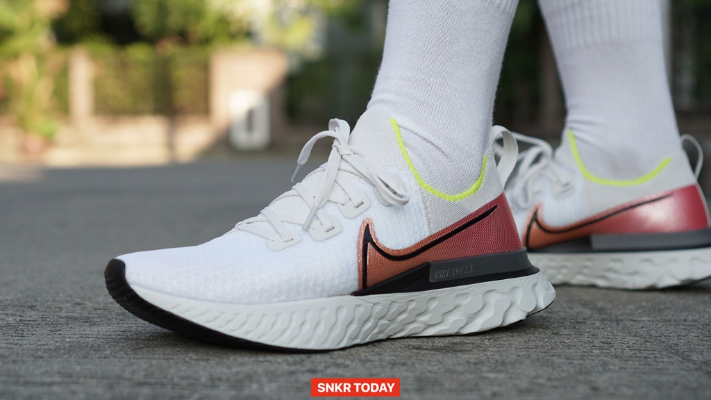 เมื่อใส่ออกวิ่ง ตัวโฟม React ก็ยังคงโดดเด่นในเรื่องของความนุ่มและเด้ง จังหวะก้าวเท้าเหมือนน้ำหนักของพื้นชั้นกลางก็จะช่วยเหวี่ยงไปข้างหน้าด้วย สัมผัสหนุบหนึบเหมือนวิ่งอยู่บนก้อนยางพาราเลย ส่วนอัปเปอร์ก็ใส่สบาย ไม่อึดอัด เมื่อวิ่งเสร็จพบว่า พวกอาการสะท้านตามหัวเข่านั้นแทไม่รู้สึกเลย อาการปวดล้าก็มีไม่มากนัก ส่วนตัวคิดว่ารองเท้าคู่นี้มาช่วยในเรื่องของการวางเท้าให้ถูกต้องเพื่อลดแรงกระแทกตามจุดข้อต่อต่างๆ ได้เป็นอย่างดี แต่จะมีเรื่องที่ไม่ชอบก็เพียงแค่ Heel clip ที่ดันตรงอุ้งเท้า ซึ่งตรงนี้ก็ขึ้นอยู่กับรูปเท้าของแต่ละคน บางคนอาจจะไม่โดนตรงนี้ก็ถือว่าดีไป ส่วนใครที่รู้สึก ก็ต้องอดทนใส่ไปสักพักจนรองเท้าขยายตัว และรอบๆ ข้อเท้าที่ค่อนข้างคมเท่านั้น หากใส่วิ่งควรจะใส่ถุงเท้าที่เลยข้อเท้าขึ้นมาเพื่อป้องกันการบาดที่ส้นเท้าและตรงเอ็นร้อยหวาย