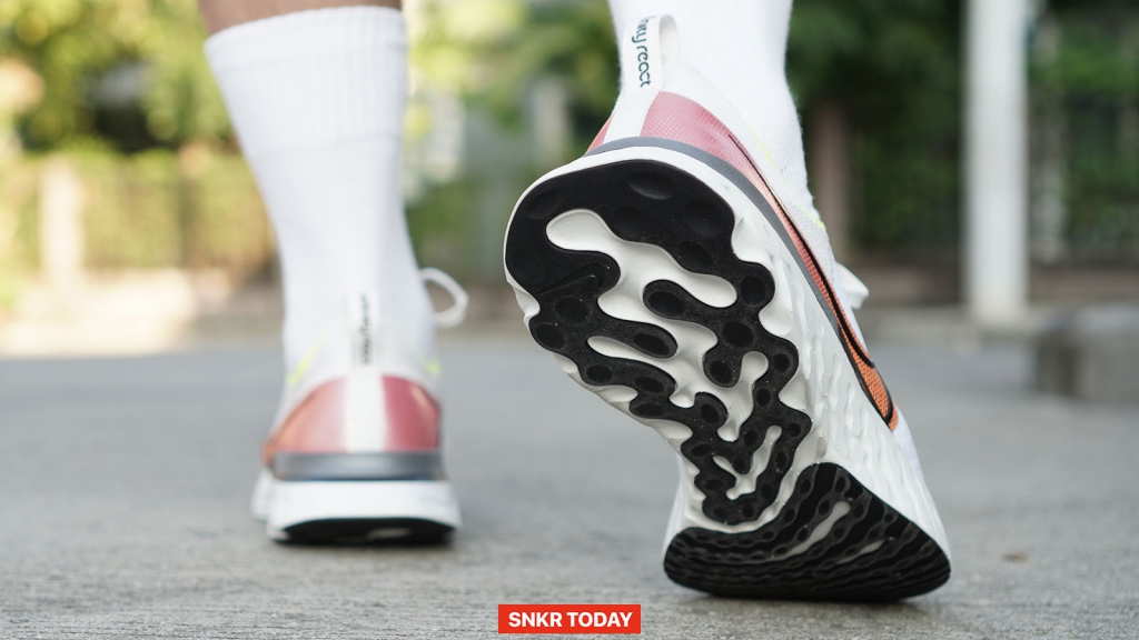 อย่างที่ได้บอกไปว่ารองเท้ารุ่นนี้ พื้นชั้นกลางมาในรูปทรงโค้ง rocker-geometry ซึ่งในช่วงที่ผ่านมาเราจะเห็นได้ว่ารองเท้าวิ่งเริ่มมีพื้นทรงโค้งมากขึ้น พื้นทรงโค้งนี้จะมาช่วยในเรื่องการลงเท้าตั้งแต่ช่วงกลางเท้าไปจนถึงหน้าเท้า วิ่งได้ลื่นไหลขึ้น และช่วยลดแรงกระแทกในขณะวิ่ง ตั้งแต่การก้าวเท้าไปจนถึงตอนลงเท้า ด้วยความที่เพิ่มปริมาณโฟ React มากว่ารุ่นที่แล้วถึง 24% ก็จะทำให้เรื่องการรองรับแรงกระแทกดีขึ้นและนุ่มขึ้น แต่ก็แลกมาด้วยน้ำหนักรองเท้าที่มากขึ้นด้วย