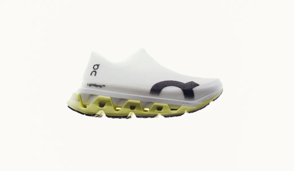 ออกแบบมาสำหรับนักวิ่งที่ต้องการวิ่งให้เร็วขึ้นและไกลขึ้น LightSpray Cloudmonster 3 Hyper ยกระดับ Cloudmonster รุ่นที่ตอบสนองดีที่สุดและซัพพอร์ตมากที่สุด ด้วยเทคโนโลยีอัปเปอร์ LightSpray™ อันล้ำสมัยของ On ด้วยการนำโครงสร้างอัปเปอร์น้ำหนักเบาพิเศษนี้มาใช้กับคอลเลกชันใหม่ ซึ่ง On สามารถสร้าง Cloudmonster ที่เบาที่สุดเท่าที่เคยมีมา โดยไม่ลดทอนความรู้สึกและประสิทธิภาพในการวิ่ง รองเท้ารุ่นนี้ผลิตจากชิ้นส่วนเพียง 8 ชิ้นเท่านั้น ได้แก่ อัปเปอร์ 1 ชิ้น, ส่วนพื้นชั้นกลาง 2 ชิ้น และชิ้นยางขนาดเล็ก 5 ชิ้น