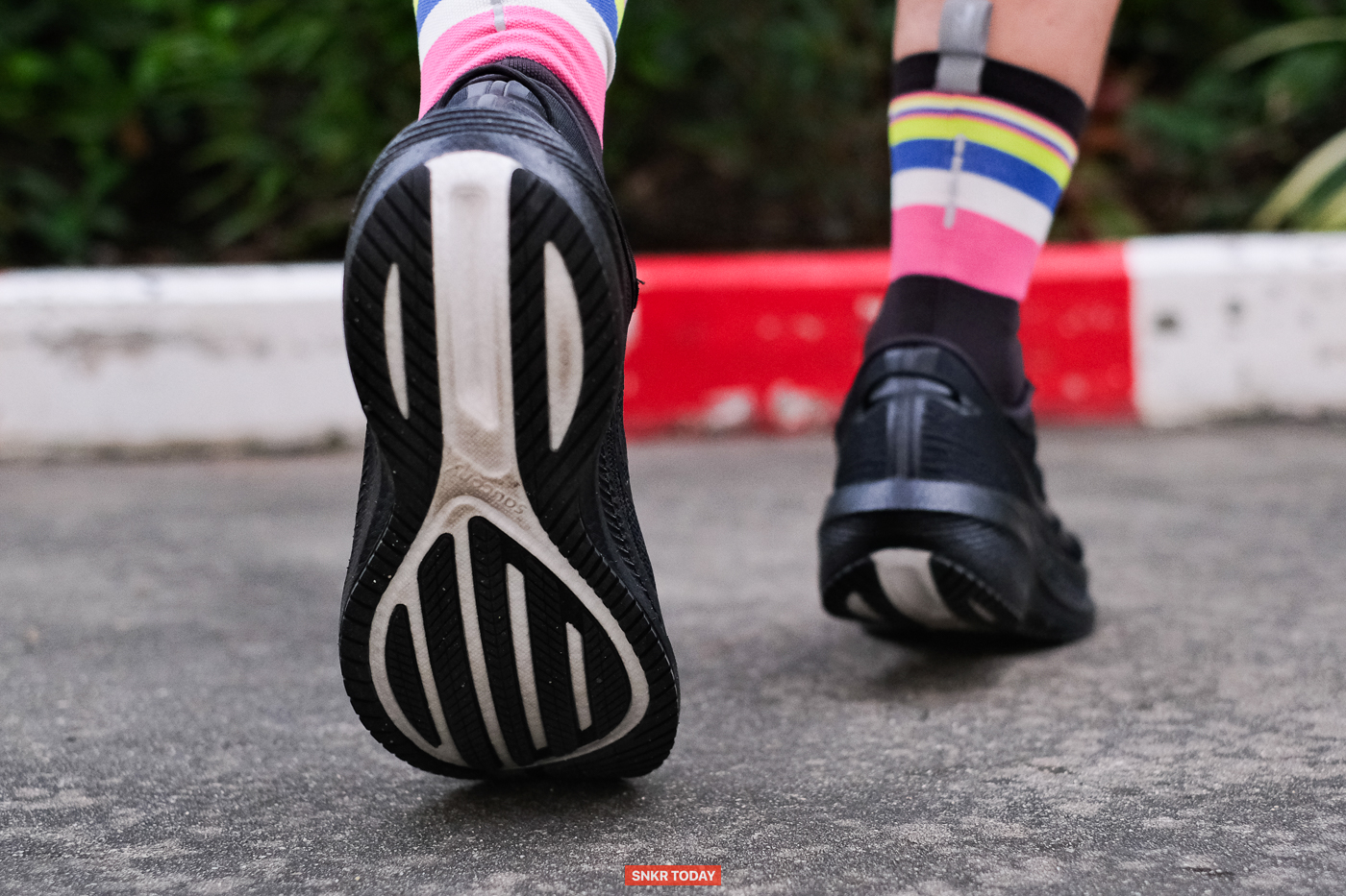 ส่วนตัววิ่งเพซสบายๆ อย่างเพซ 8-9 ก็รู้สึกว่าไปได้เรื่อยๆ ไม่รีบร้อนอะไร มีแรงส่งคืนกลับมาเรื่อยๆ วางเท้าตามทรงของพื้นชั้นกลางก็ช่วยให้เราวิ่งแบบไหลๆ ไปได้แบบเป็นธรรมชาติ ส่วนอัปเปอร์ก็ซัพพอร์ตและแข็งแรงทำให้รู้สึกว่าทั้งรองเท้าถูกยกขึ้นมาแล้วไปด้วยกัน ไม่เทอะทะ มีความคล่องตัวสูง
