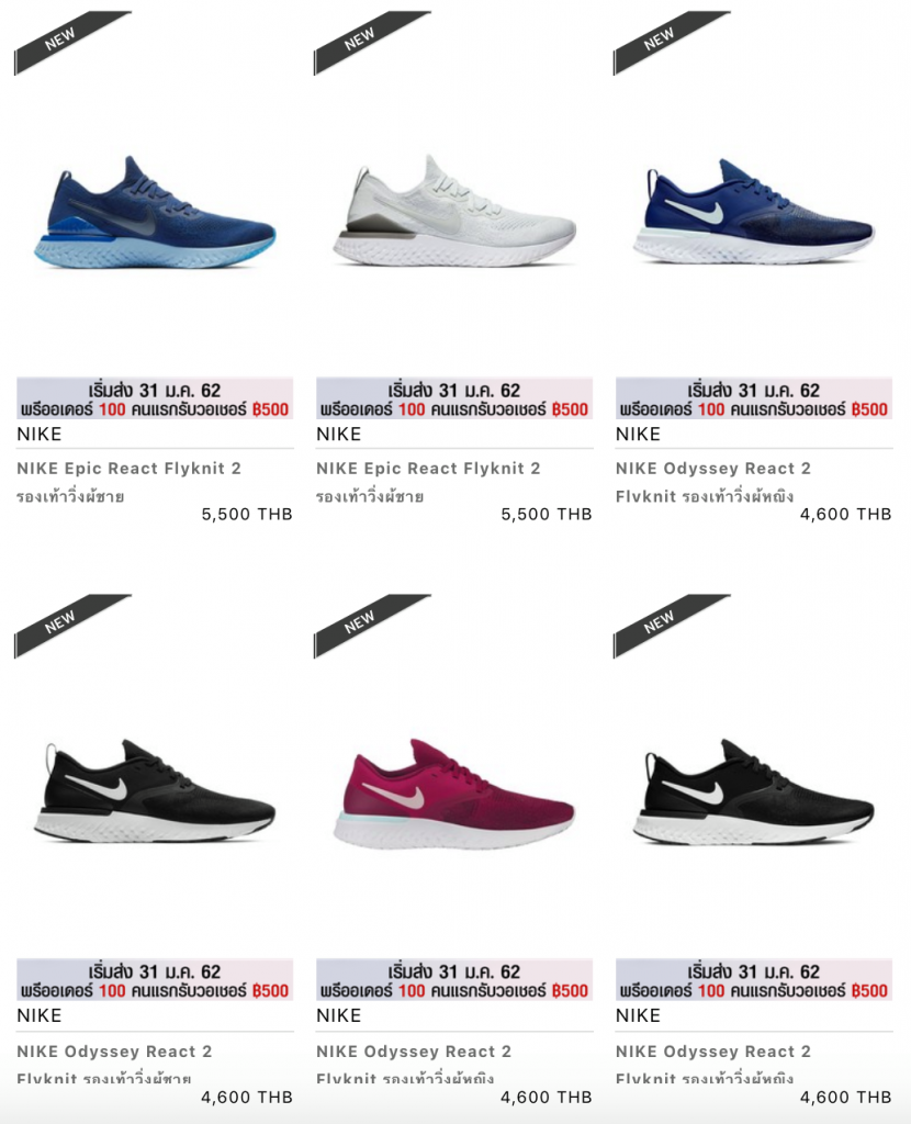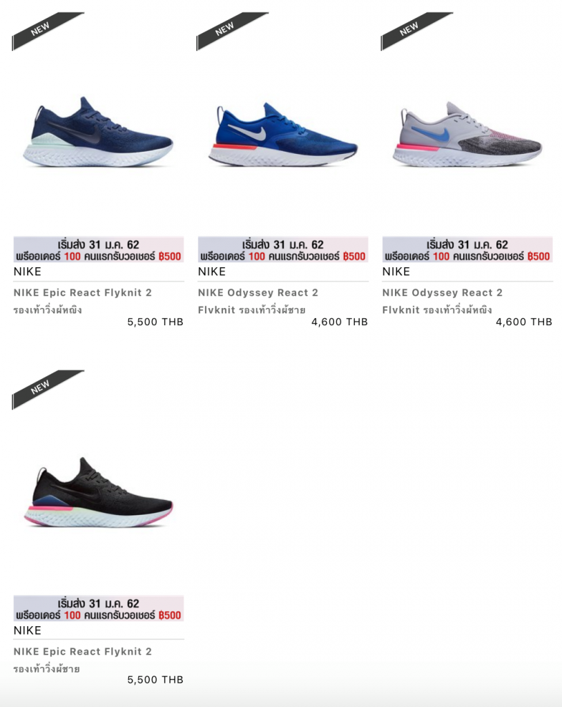 ในวันที่ 31 มกราคม 2019 ทางไนกี้ได้มีการเตรียมเปิดตัวและวางจำหน่าย Nike Epic React 2 อย่างเป็นทางการ หลังจากที่มีการวางจำหน่ายสี 8-bit ให้กับสมาชิก Nike Plus ก่อน และทาง Supersports ได้ทำการเปิดให้จองแล้ว และมีการเซอร์ไพรส์เปิดให้จอง Nike Odyssey React 2 ด้วย